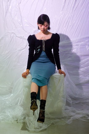 裾は丸みのある切り替えでフロントから出る足のラインが綺麗な一着です