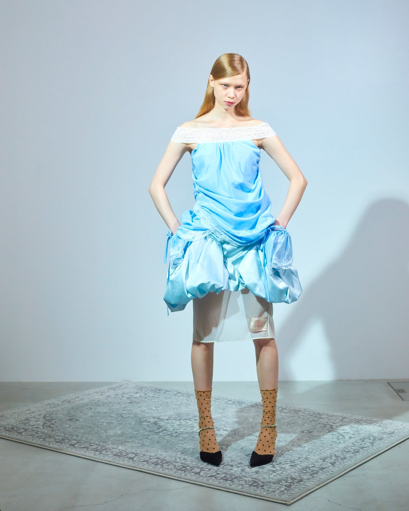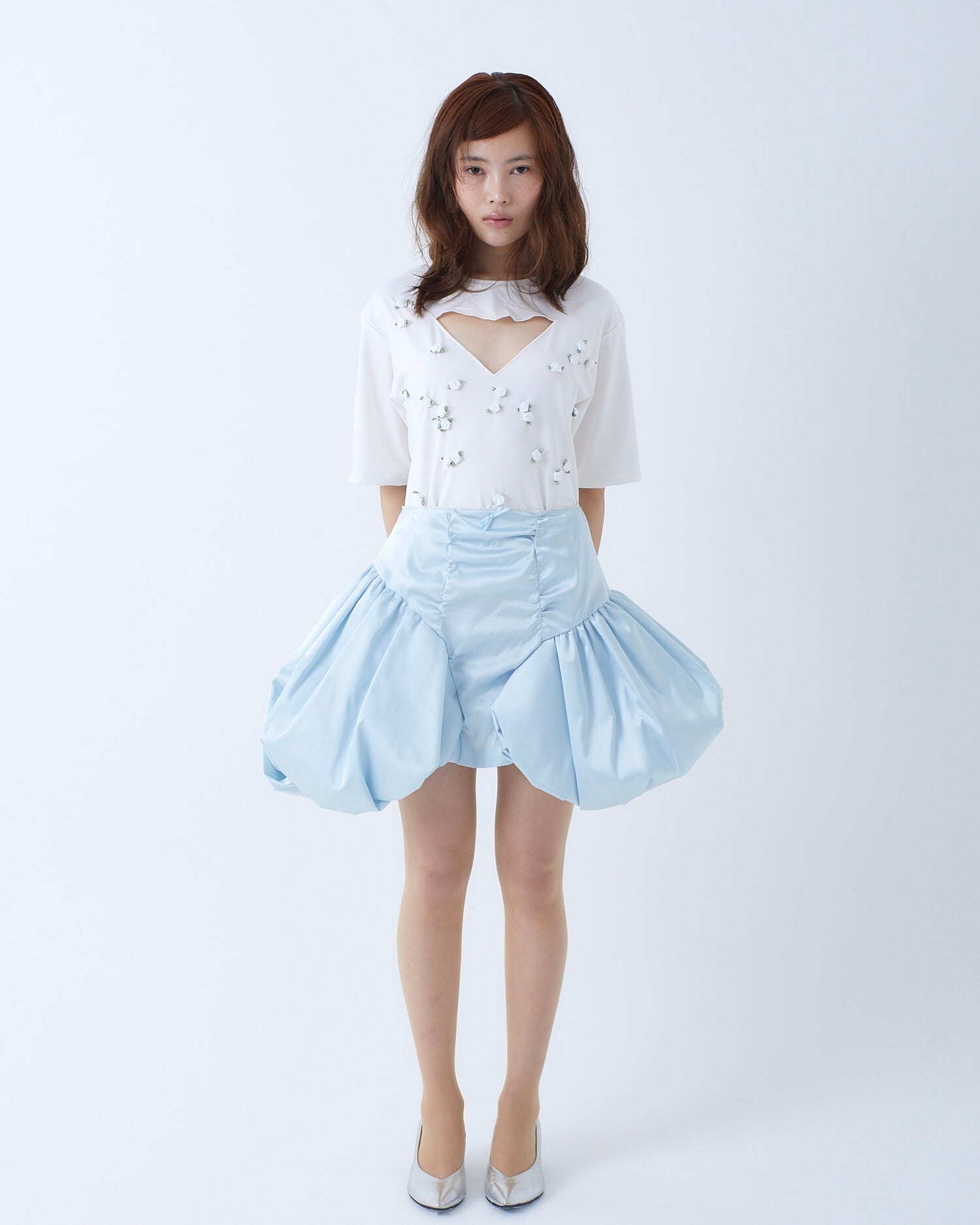 アインメトリーに広がったバルーンが特徴のS.Fらしいシルエットのスカート