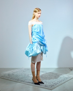 2024春夏コレクションで作ったパターンを展開して育て、中に透ける素材を入れることでワンピースとして生まれ変わりました