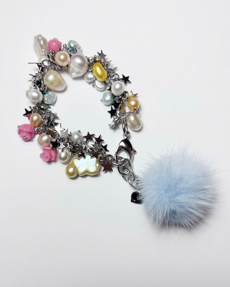 多種なマテリアルが詰まったキュートなブレスレット、バックチャームとしてもご使用いただけます